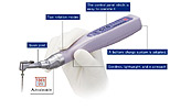 A Raypex 4 VDW - Elektronischer Wurzelkanaleinmesser, der möglicht macht, die Länge des Wurzelkanales genau zu bestimmen. Auf dem Bildschirm ist der letzte, ein Millimeter länge Abschnitt der Wurzelspitze vergrössert zu sehen und auch die Toneffekte machen den Arzt darauf aufmerksam, wann er die Arbeitslänge erreicht hat.