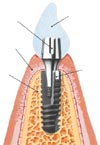 Ezek mind-mind jogosan felmerülő, izgalmas kérdések, és a beültetés előtt egyértelműen tisztázandók a páciens számára. Az implantátum különböző méretű és alakú, előzetes röntgen- és szájvizsgálat alapján kiválasztott, általában fém – nagy tisztaságú titán – csavar vagy lemez. Ennek anyagát és speciális felülkezelését hosszú évek kísérletei és tapasztalatai alapján választották ki, hogy a szervezet, illetve az azt körülvevő csont nemcsak megtűrje, hanem szinte sajátjaként befogadja, és vele biológiai egységet alkosson.