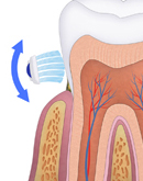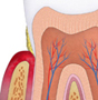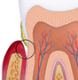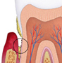 | 3.) Fogágybetegségek (parodontitis): ha az ínygyulladás hosszú ideig fennmarad, akkor krónikus ínygyulladásról beszélünk. A folyamatos harc a baktériumok és a szervezet védekező rendszere között oda vezet, hogy a normálisan is jelenlevő barázda a fog és az íny között egyre mélyebb lesz. Ez az ínytasak. A folyamatosan fennálló gyulladás következtében a fogat tartó csontszerkezet is lassan leépül. Ezt a betegséget már kezdeti fogágybetegségnek nevezzük. |